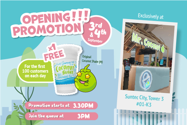 Have you waited long?! Our FREE ‘M’ size Original Coconut Shake is UP FOR GRABS at our newest outlet at Suntec City! Be one of our 1st 100 customers per day on 3rd and 4th September from 3.30pm till stocks last to win x1 ‘M’ size Original Coconut Shake each! (Queue starts at 3pm) Check […]